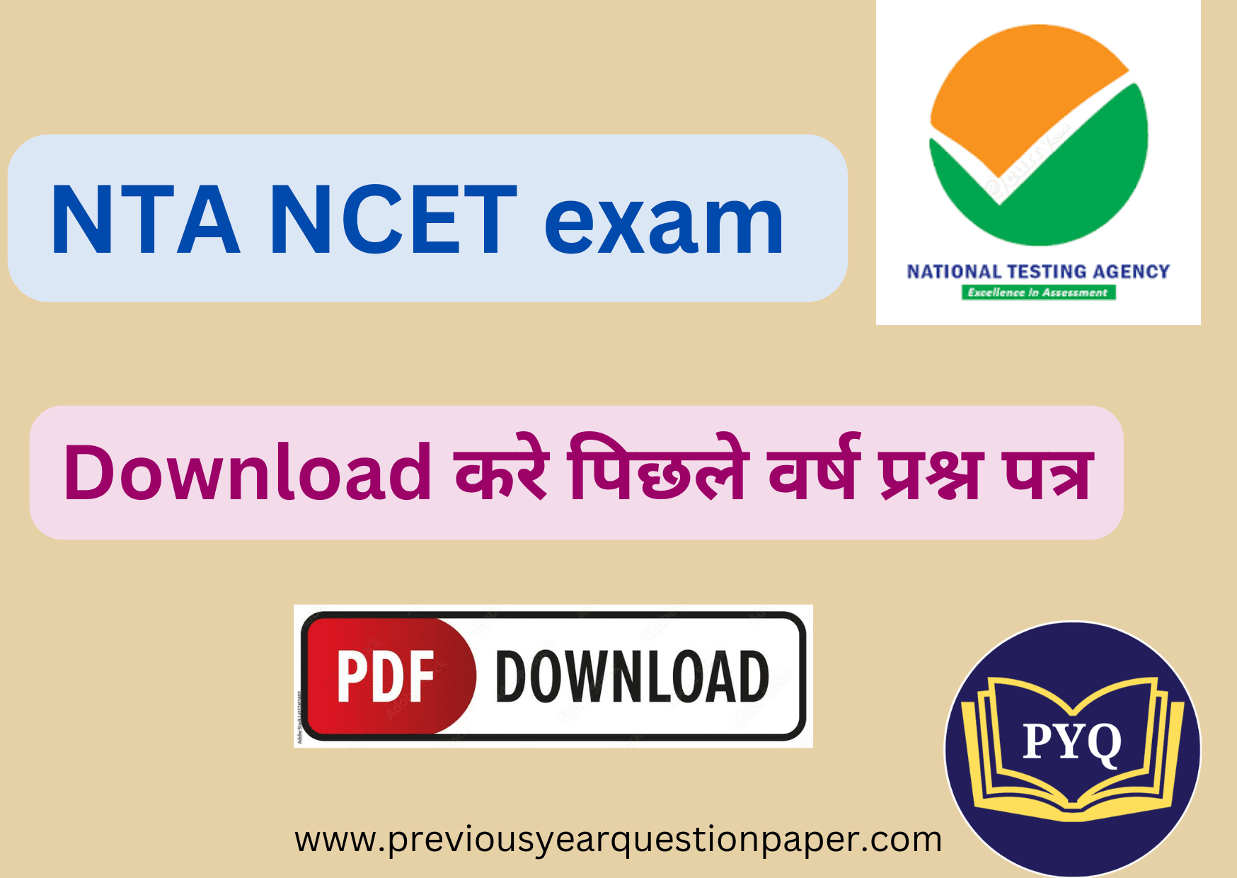 NTA NCET पिछले वर्ष के प्रश्न पत्र पीडीएफ